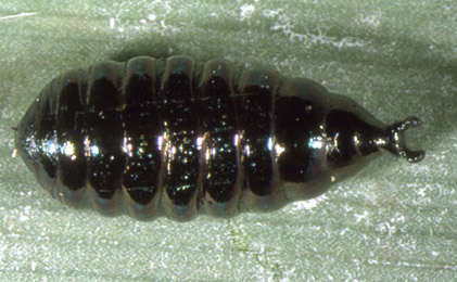 Puparium: The puparia of flies are formed within the hardened last larval skin or puparium and as a result sheaths enclosing head appendages, wings and legs are not visible externally (see examples).