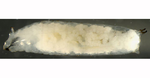 Puparium: The puparia of flies are formed within the hardened last larval skin or puparium and as a result sheaths enclosing head appendages, wings and legs are not visible externally (see examples).